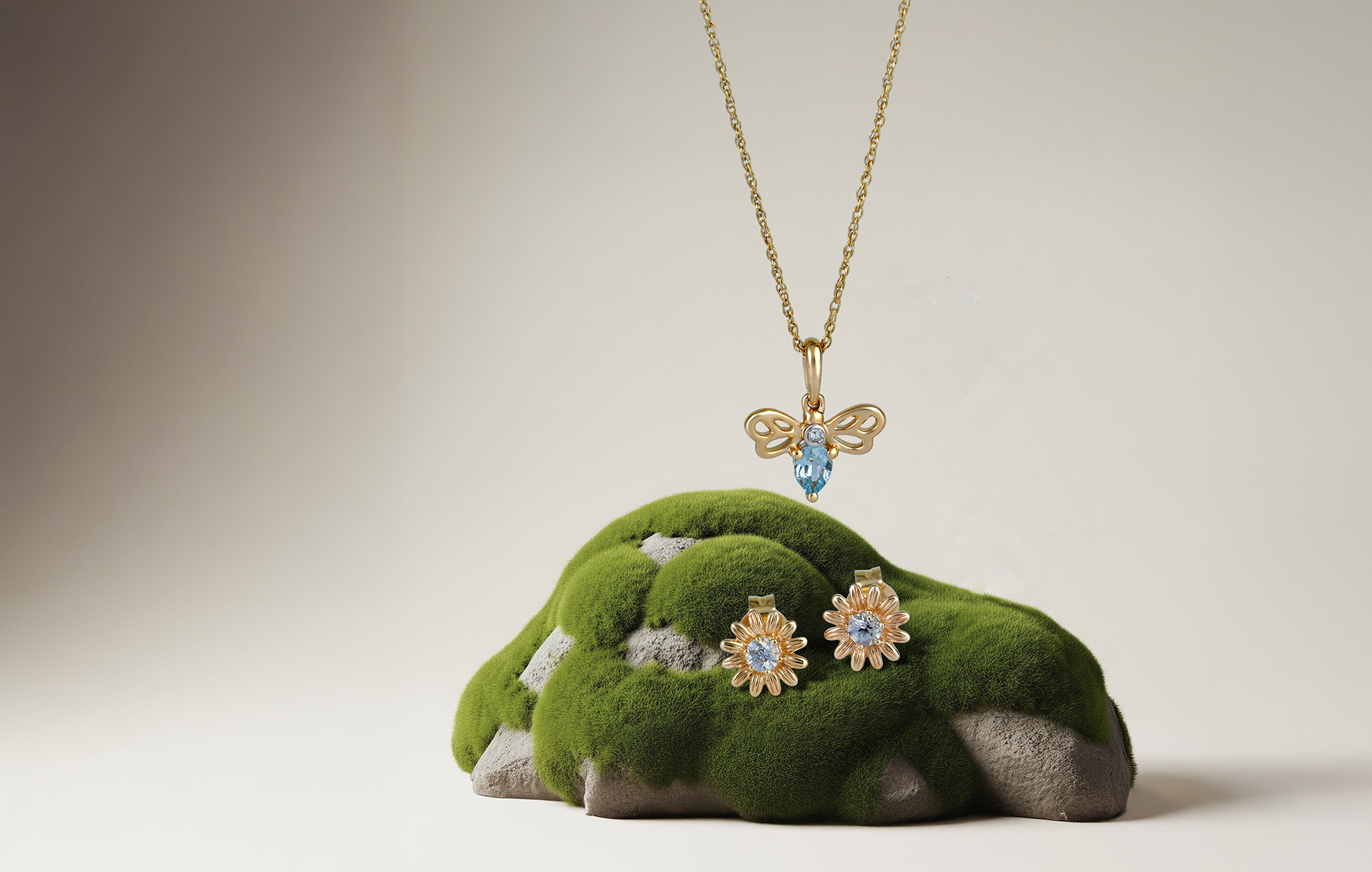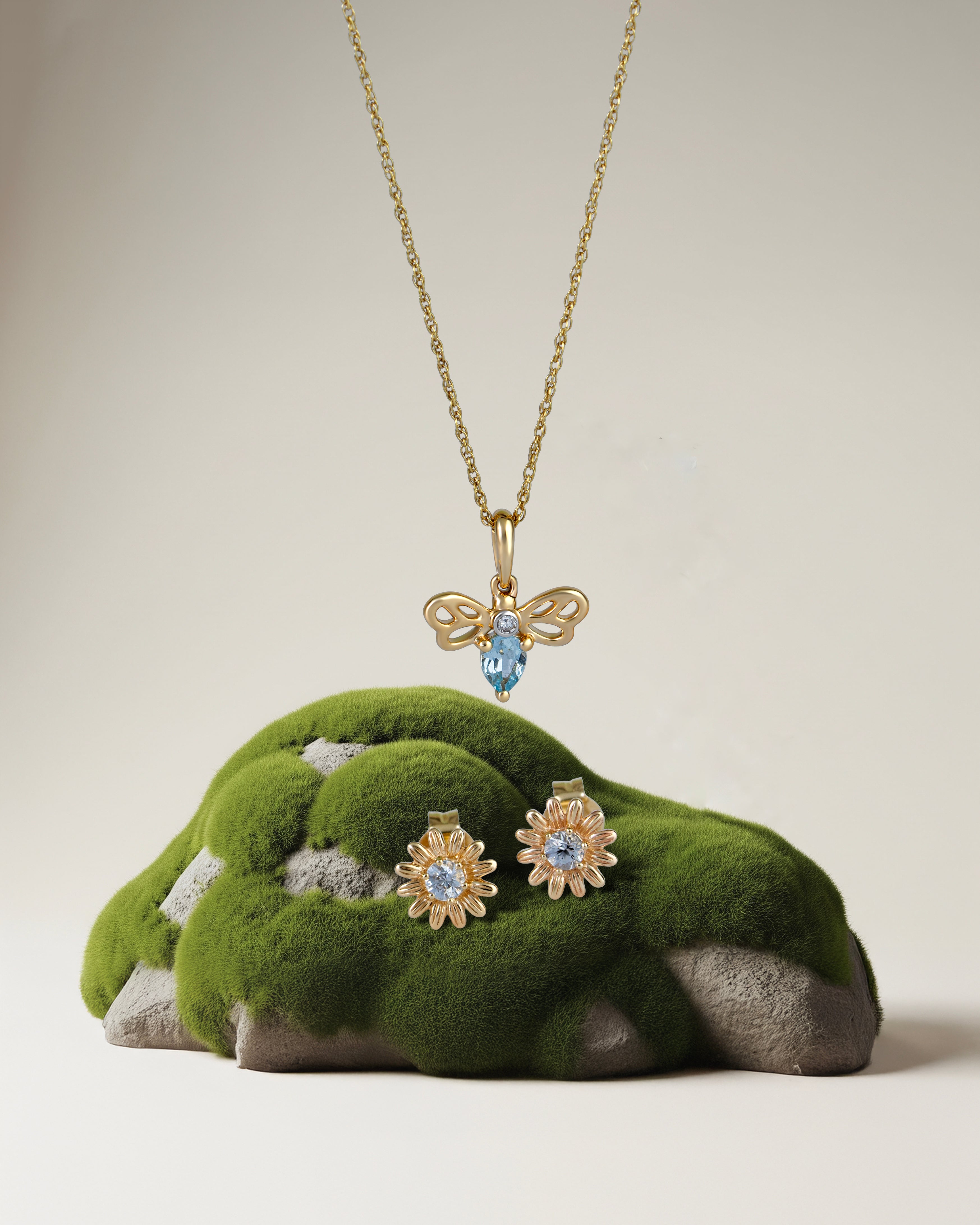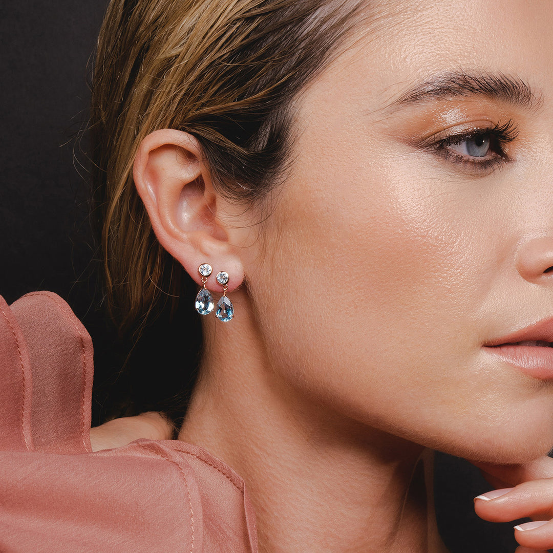 Collar clásico con colgante de pera, aguamarina y diamantes en oro amarillo de 9 quilates