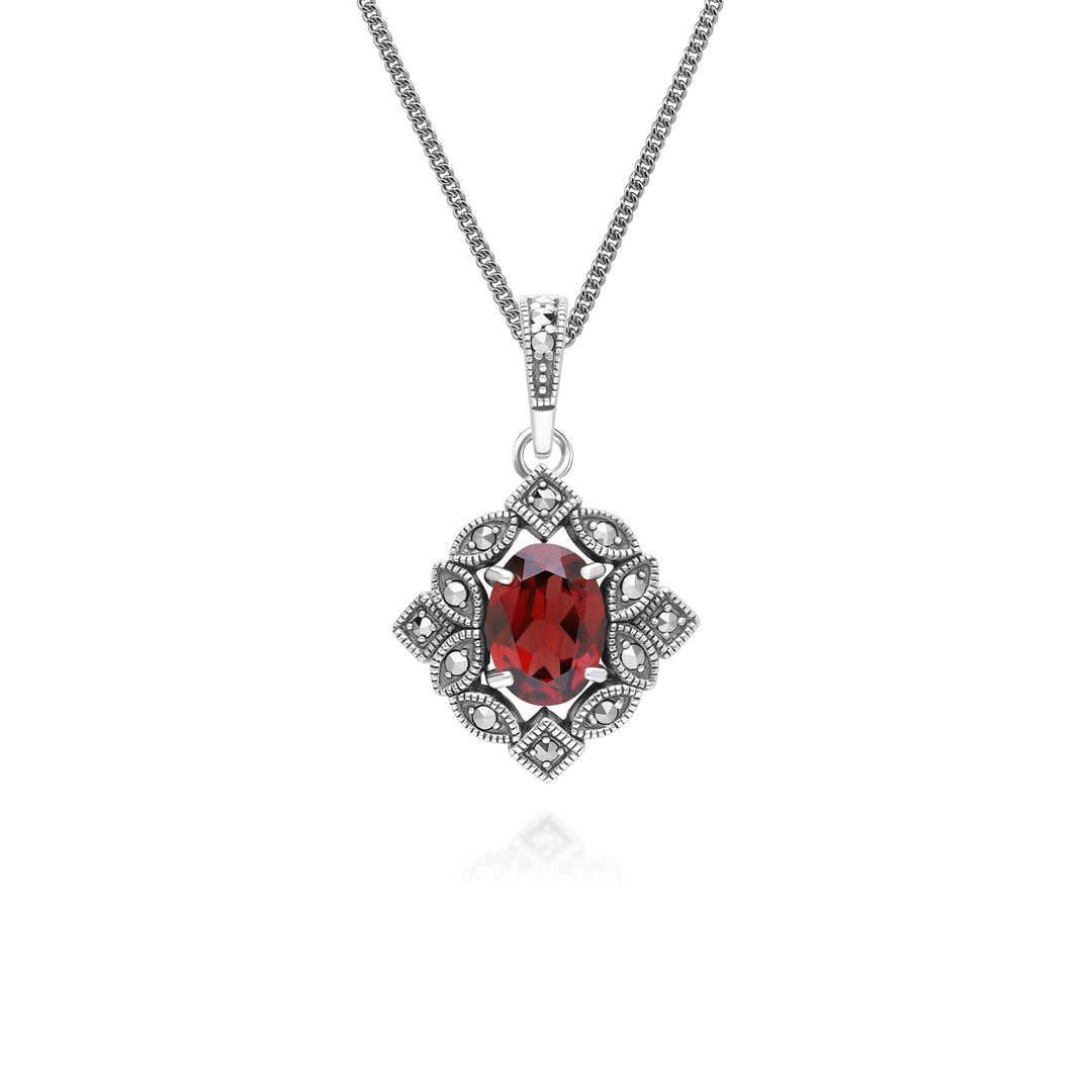 Collar con colgante ovalado de granate y marcasita estilo art déco en plata de ley.