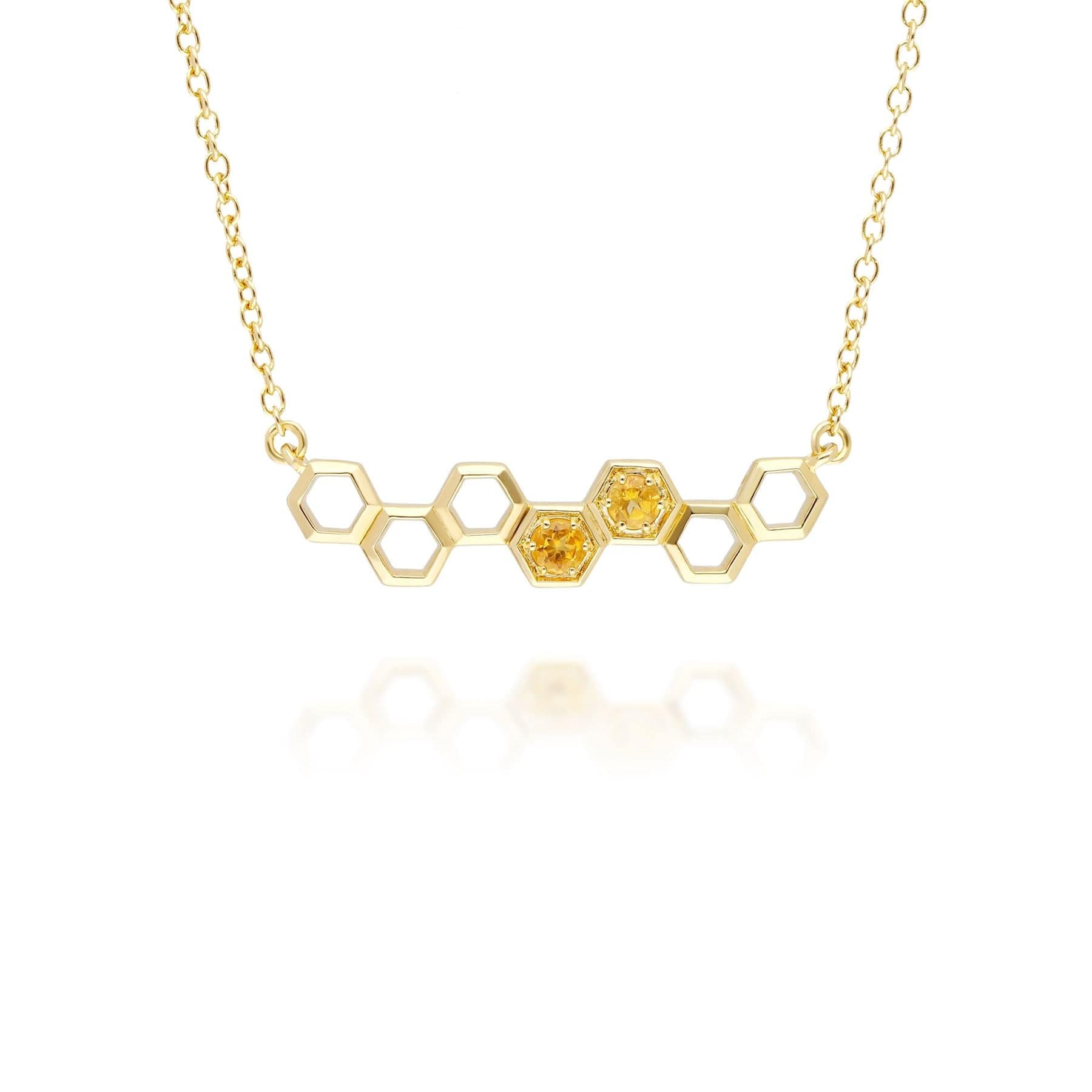 Un collar de cadena inspirado en la naturaleza con piedras preciosas de citrino amarillo cálido rodeadas de engastes hexagonales inspirados en un panal de oro amarillo sedoso de 9 quilates. Combina este divertido collar con tus joyas favoritas de la colección Honeycomb Inspired de Gemondo.