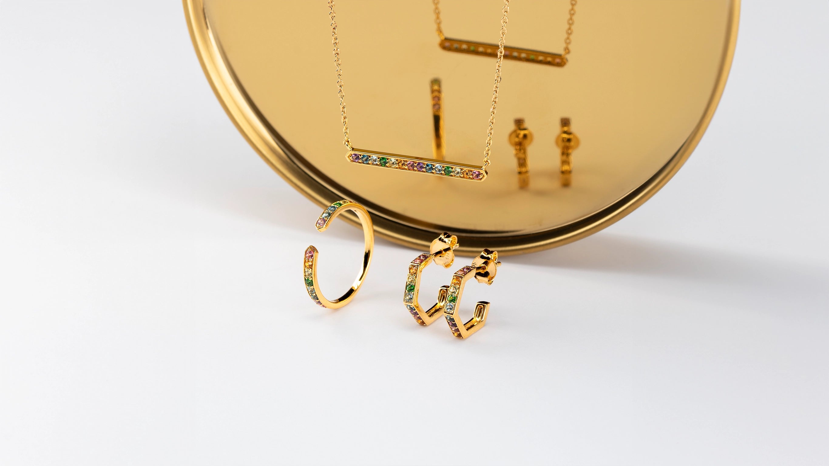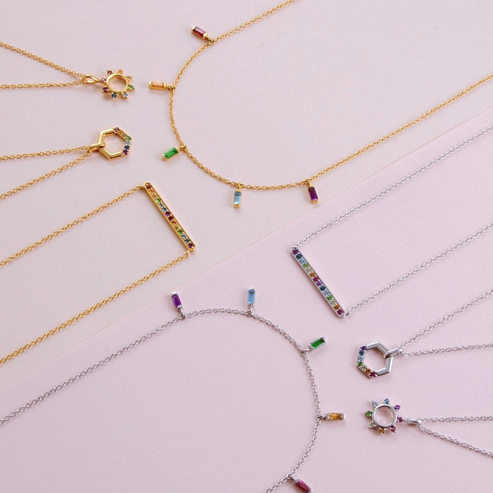 La colección Rainbow celebra vivir la vida en color. Con incrustaciones de una variedad de piedras multicolores, cada diseño de joyería de plata esterlina y chapado en oro ha sido diseñado para traer alegría y mostrar amor. Ponte capas y apila tus joyas favoritas de arcoíris y deja que comience la diversión.