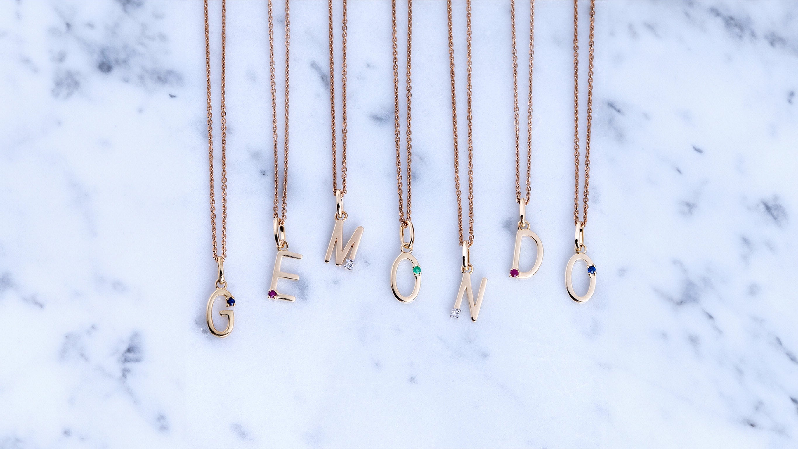 La colección Gemondo Initials presenta una gama de enérgicos dijes de letras con piedras preciosas de oro de 9 quilates. Personalice su look de joyería con un dije alfabético que exprese sus iniciales, las de sus seres queridos y más.
