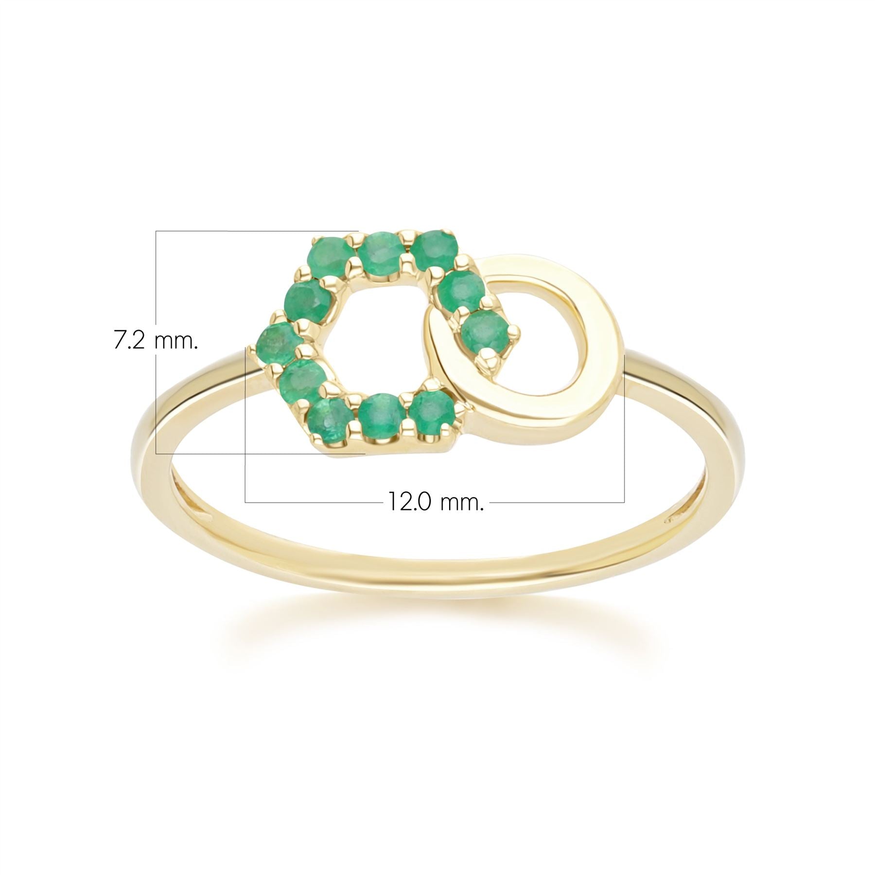 Geometric Hexagon and Round Linked with Prong Set Emerald Ring in 9ct Yellow Gold