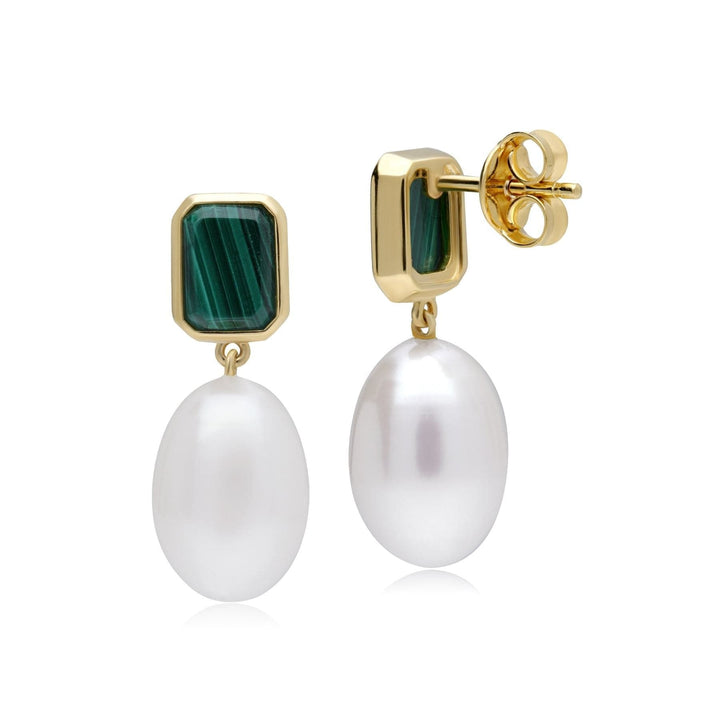 Pendientes colgantes ECFEW™ Unifier de malaquita y perla en plata de ley bañada en oro