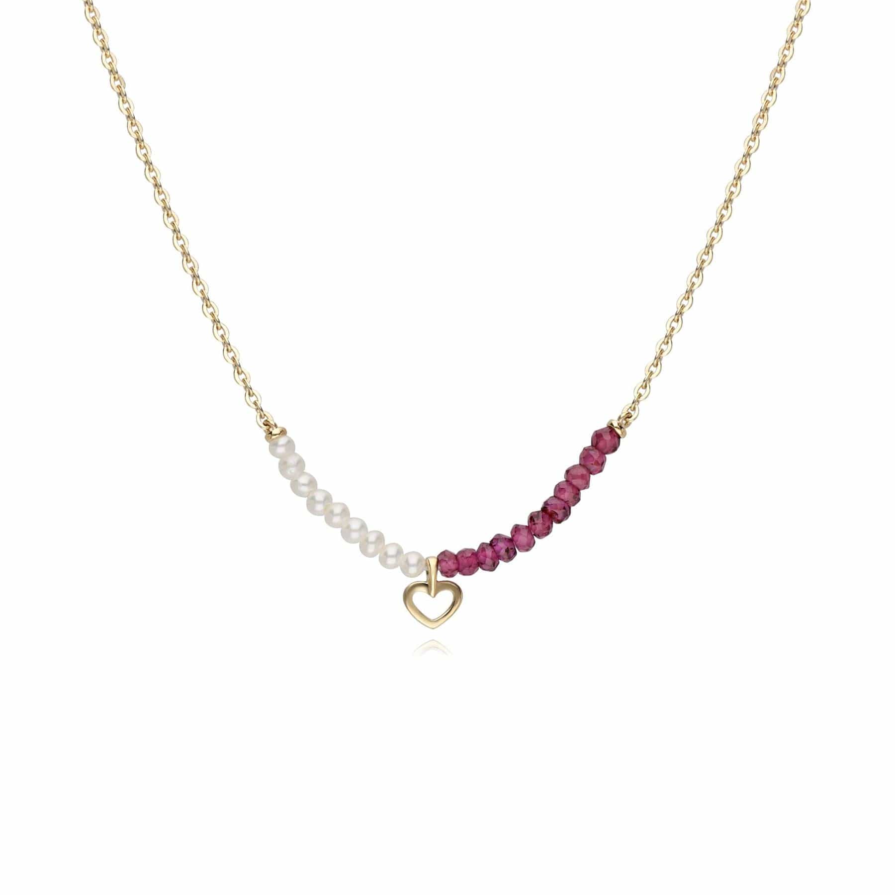 Collar de corazón de rodolita y perla cultivada de agua dulce en oro amarillo de 9 quilates