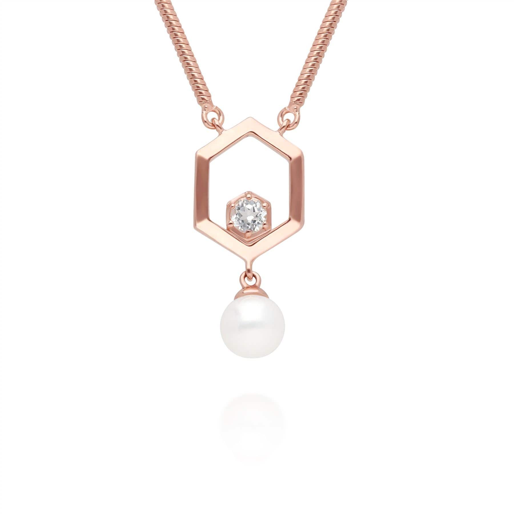 270N035610925 Modern Pearl & White Topaz Hexagon Drop Necklace in Rose Gold Plated Silver 2