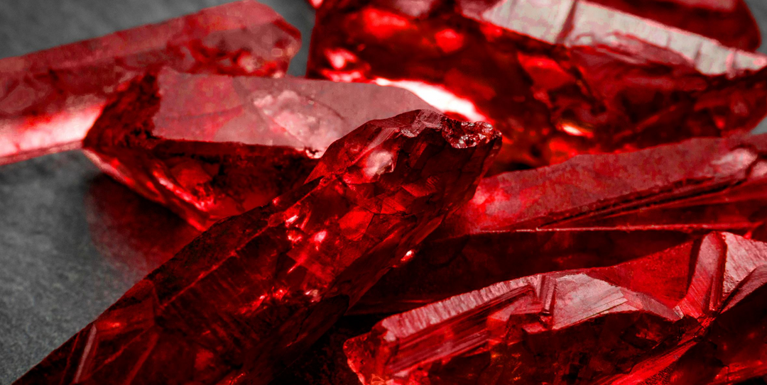 Los rubíes rojos han sido considerados durante mucho tiempo como una piedra preciosa romántica, que evoca AMOR y PASIÓN en todas sus formas. El nombre sánscrito del rubí se traduce aproximadamente como "rey de las piedras preciosas". Las leyendas afirman que los rubíes pueden cambiar su color a un rojo más oscuro como señal de advertencia de problemas venideros y mala suerte. Se dice que Catalina de Aragón, primera esposa del rey Enrique VIII, predijo su caída al ver el oscurecimiento de su rubí.