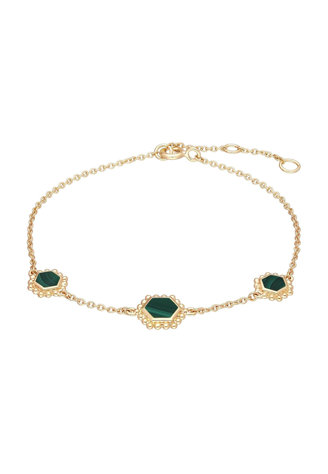 Alguna vez se dijo que la malaquita, con sus vívidas curvaturas lineales de color verde, protegía de las fuerzas del mal y la magia negra. Derivado de “molochitas” o malva en griego, lleva el nombre de una hierba verde que refleja su apariencia natural y fértil. De brillo fibroso, la malaquita a menudo se talla en hermosos cabujones para hacer alarde de su bosque oscuro y sus exuberantes rayas verdes y patrones esféricos. La malaquita puede ser sensible a las condiciones ácidas, así que asegúrese de tener cuidado al usarla para preservar su brillo y pula suavemente para realzar su brillo.