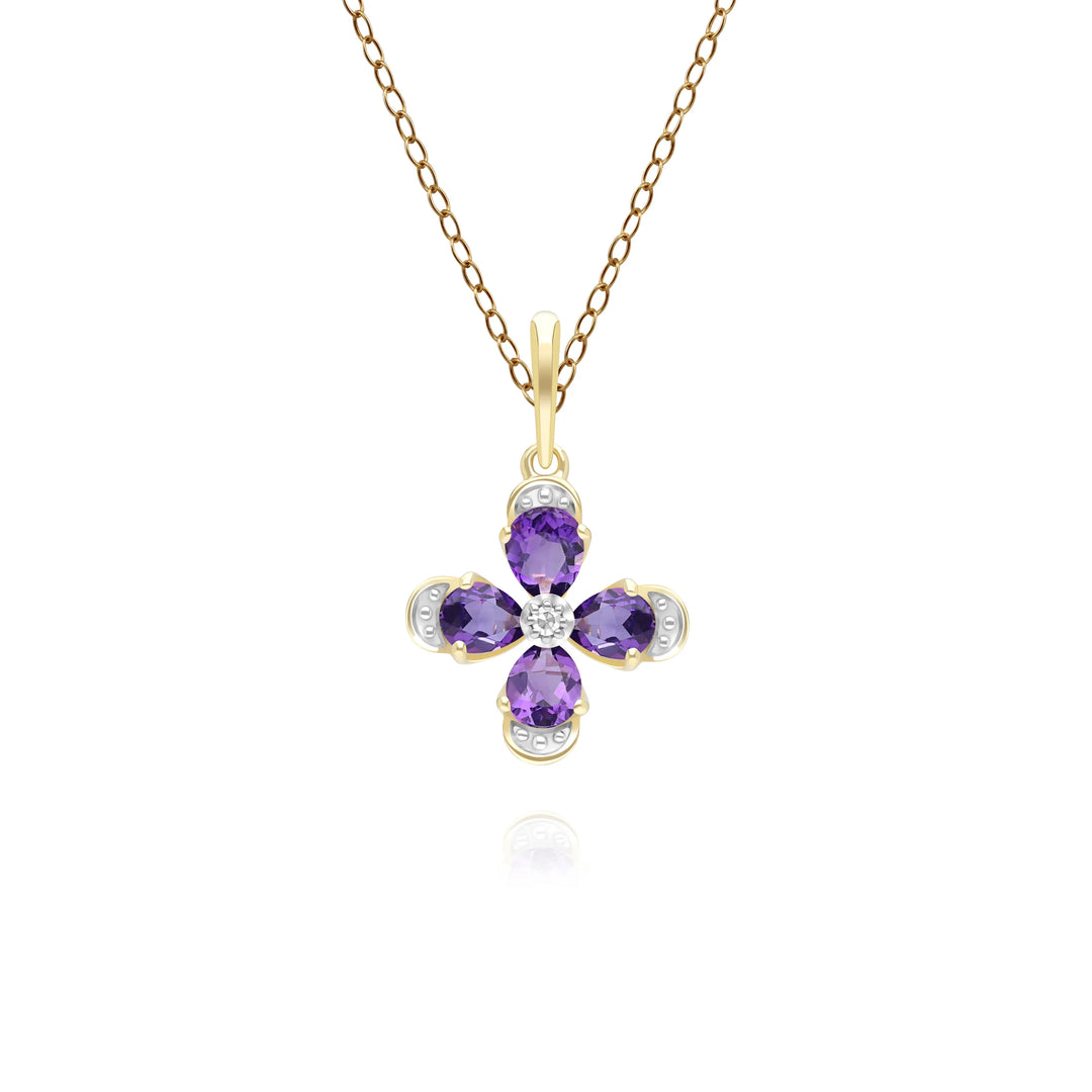Esta piedra pleocroica de color púrpura, con muchos colores que se ven cuando la luz la atraviesa, está impregnada de misticismo. La amatista es verdaderamente una piedra antigua con piezas de joyería que datan del año 2000 a.C. Con origen en el griego 'Amethustos', que significa sin embriaguez, las copas para beber se tallaban en amatista para que, mientras se recibía a anfitriones adinerados, se pudiera permanecer sobrio, bebiendo solo agua, ya que la copa daría la impresión de vino. Símbolo de realeza, piedad y calma, una piedra grande es una característica de las joyas de la corona británica y también se dice que San Valentín incluso usó un anillo de oro con amatista. La amatista se celebra como la piedra preciosa simbólica en los decimoséptimo aniversario de bodas, la piedra de nacimiento de Febrero y el signo astrológico Piscis en el calendario zodiacal.