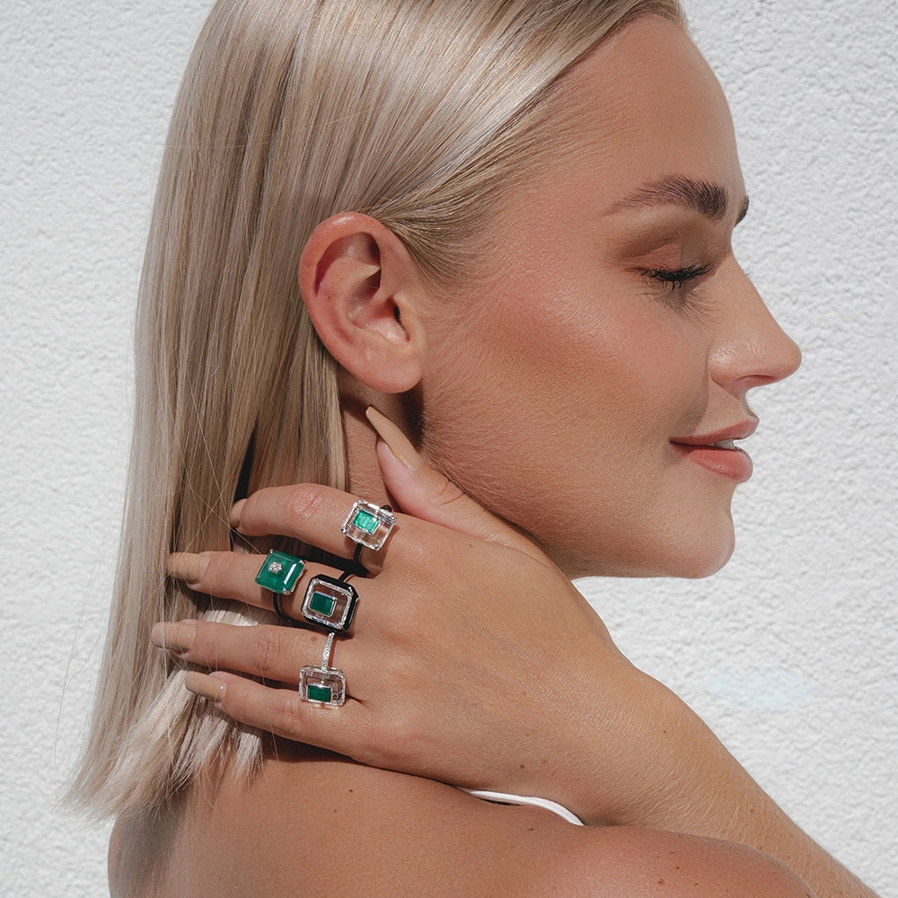 Regrese a un mundo de artesanía exquisita y diseño audaz con la asombrosa colección Grand Deco de Gemondo. Inspirada en los locos años veinte, esta colección captura la esencia del glamour de la alta joyería con formas geométricas audaces, piedras preciosas deslumbrantes y detalles cautivadores.