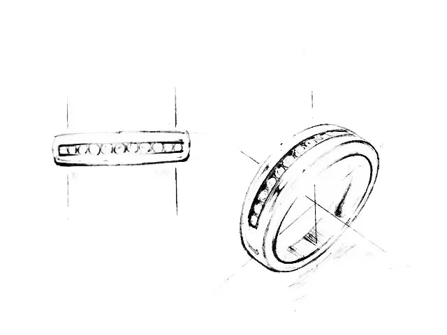 Los engastes de canal describen muchas piedras que están alineadas y aseguradas con un contorno de metal a cada lado. El "canal" se refiere al metal que recubre las gemas. Dentro de cada canal se crean cojinetes pequeños pero adaptables que ayudan a suspender cada piedra preciosa en su lugar. Los entornos de canal se prestan a diseños clásicos y románticos, como anillos de eternidad y anillos de compromiso.