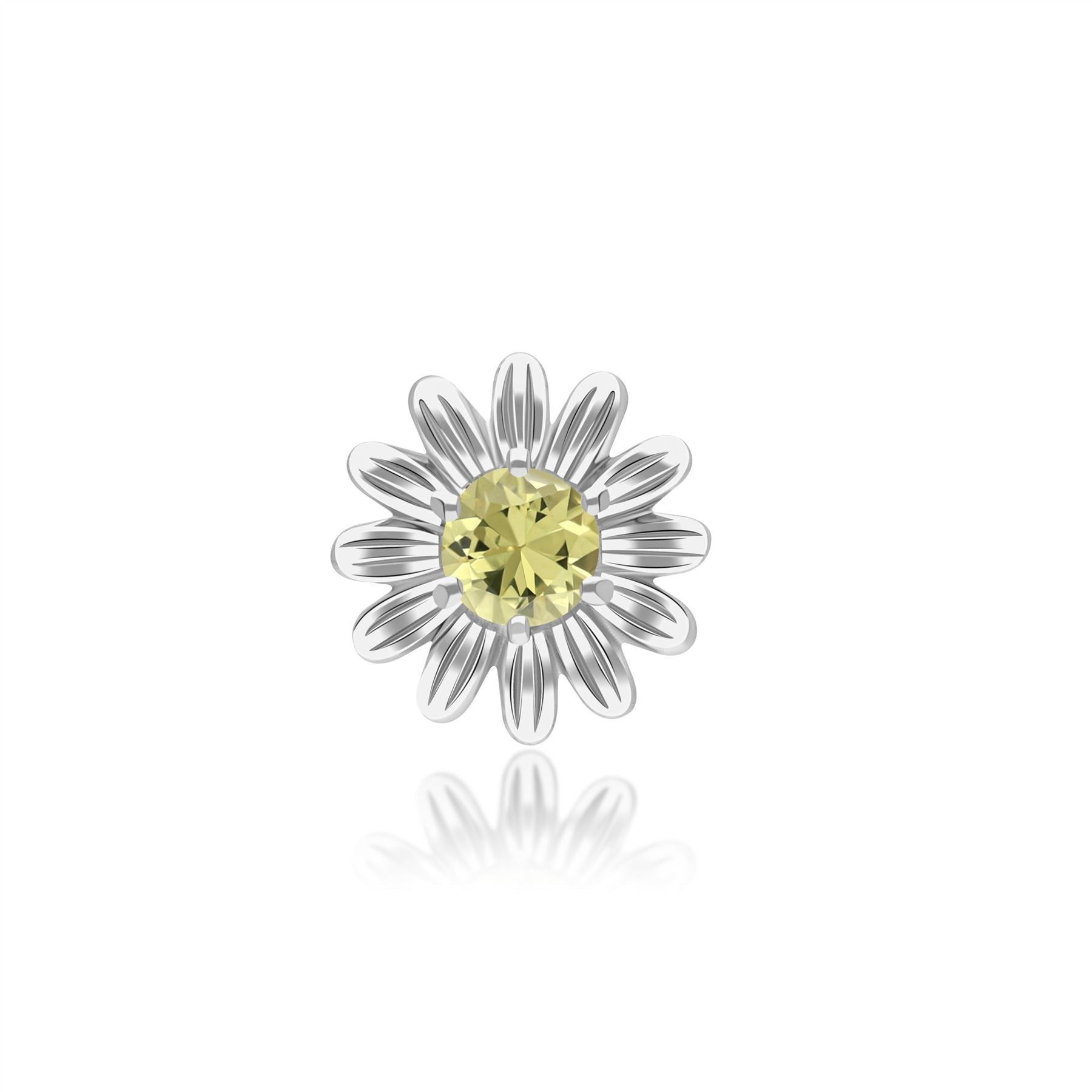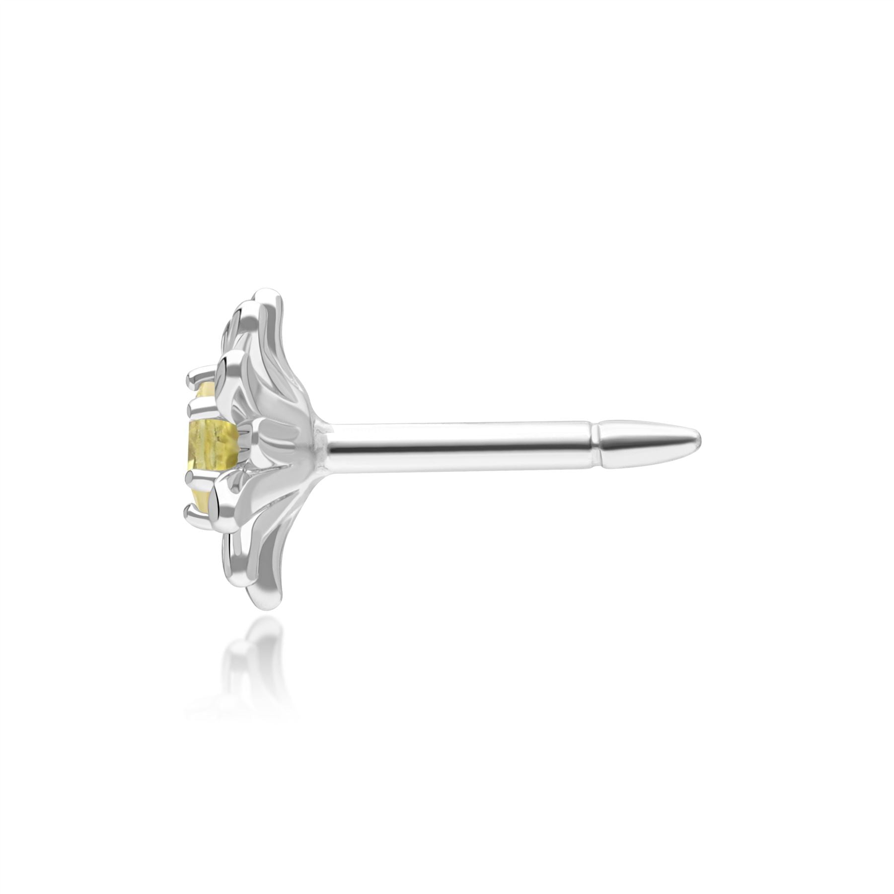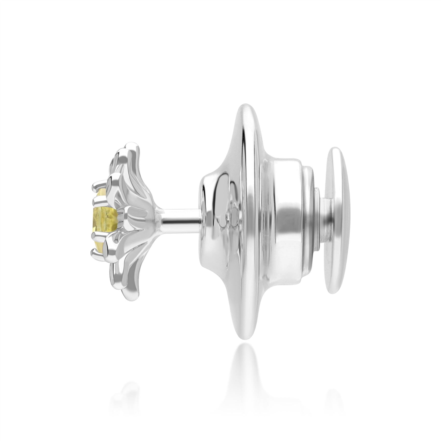 Gardenia Daisy Yellow Sapphire Floral Halo Flower Pin in 9ct White Gold