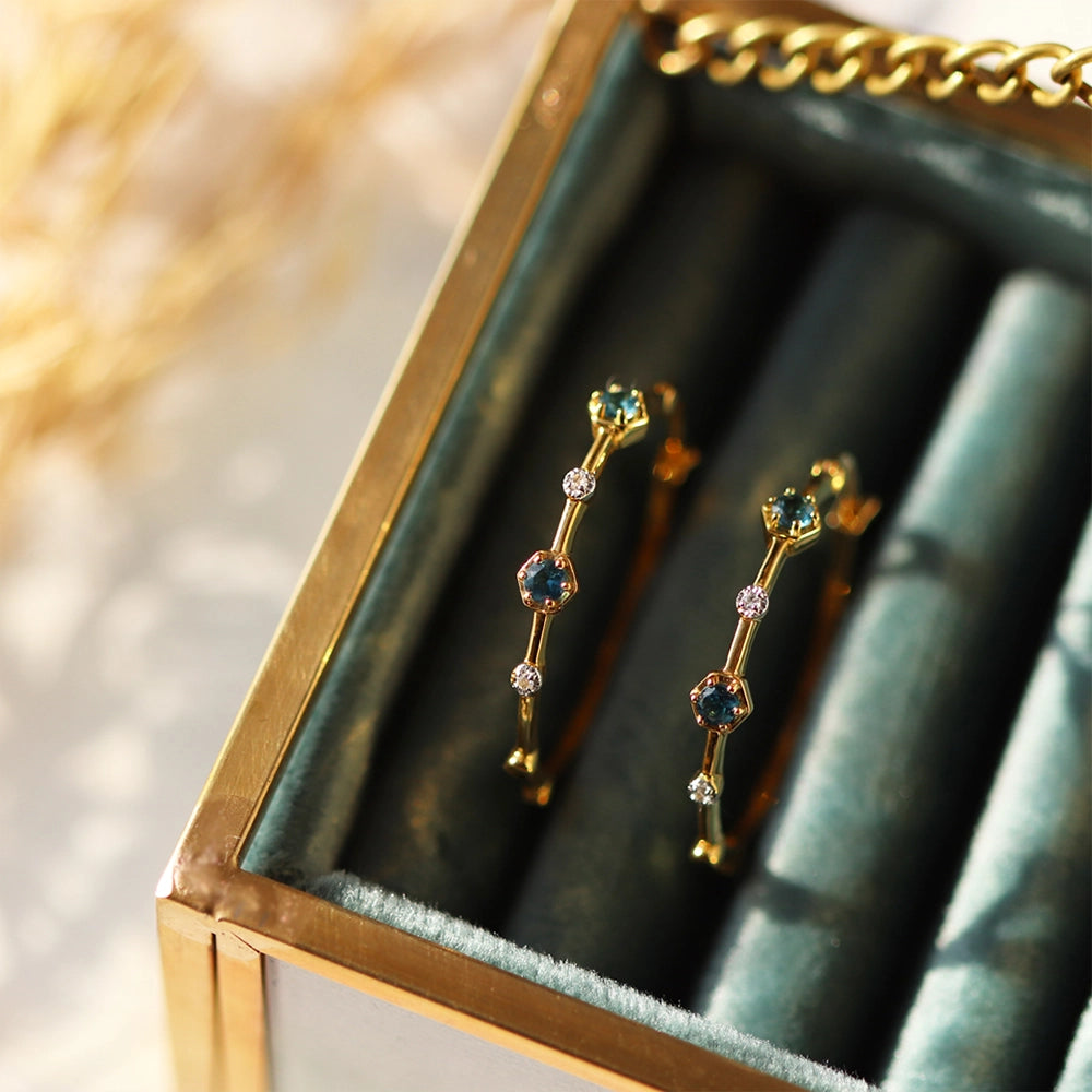 Pendientes de aro modernos y glamurosos de espinela y granate en plata de ley